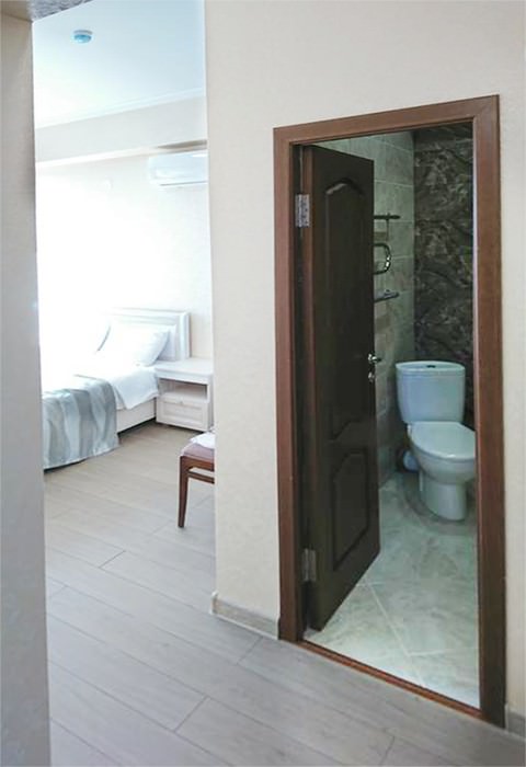 Площадь номера - 19 кв.м. 1 комната. 2 осн. места. В номере: телевизор; холодильник; балкон; кондиционер; душ; туалет; сейф; 2-спальная кровать; чайный набор.